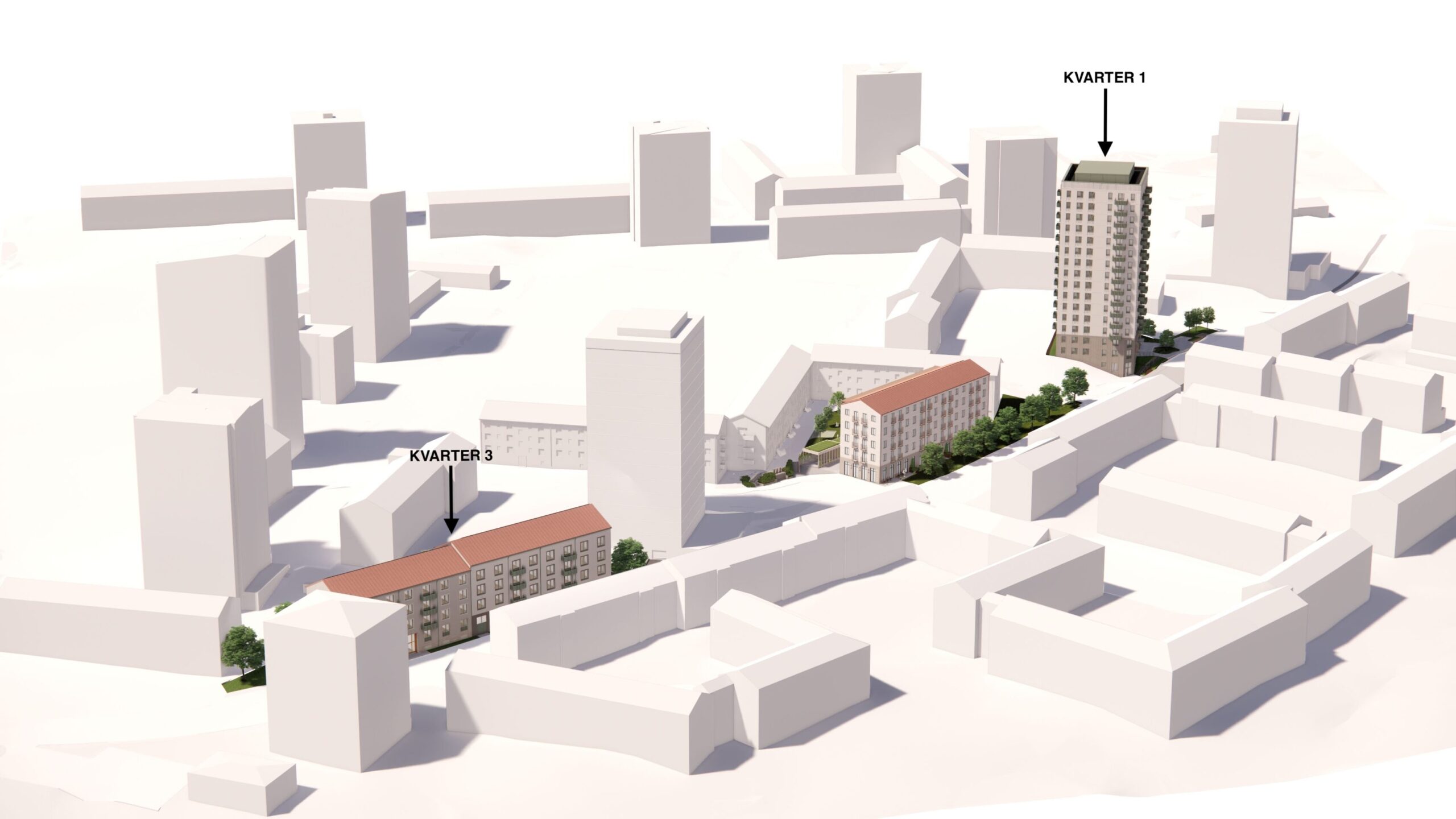 Vi planerar för 100–120 nyproducerade hyreslägenheter i två kvarter där arbete med detaljplan pågår.